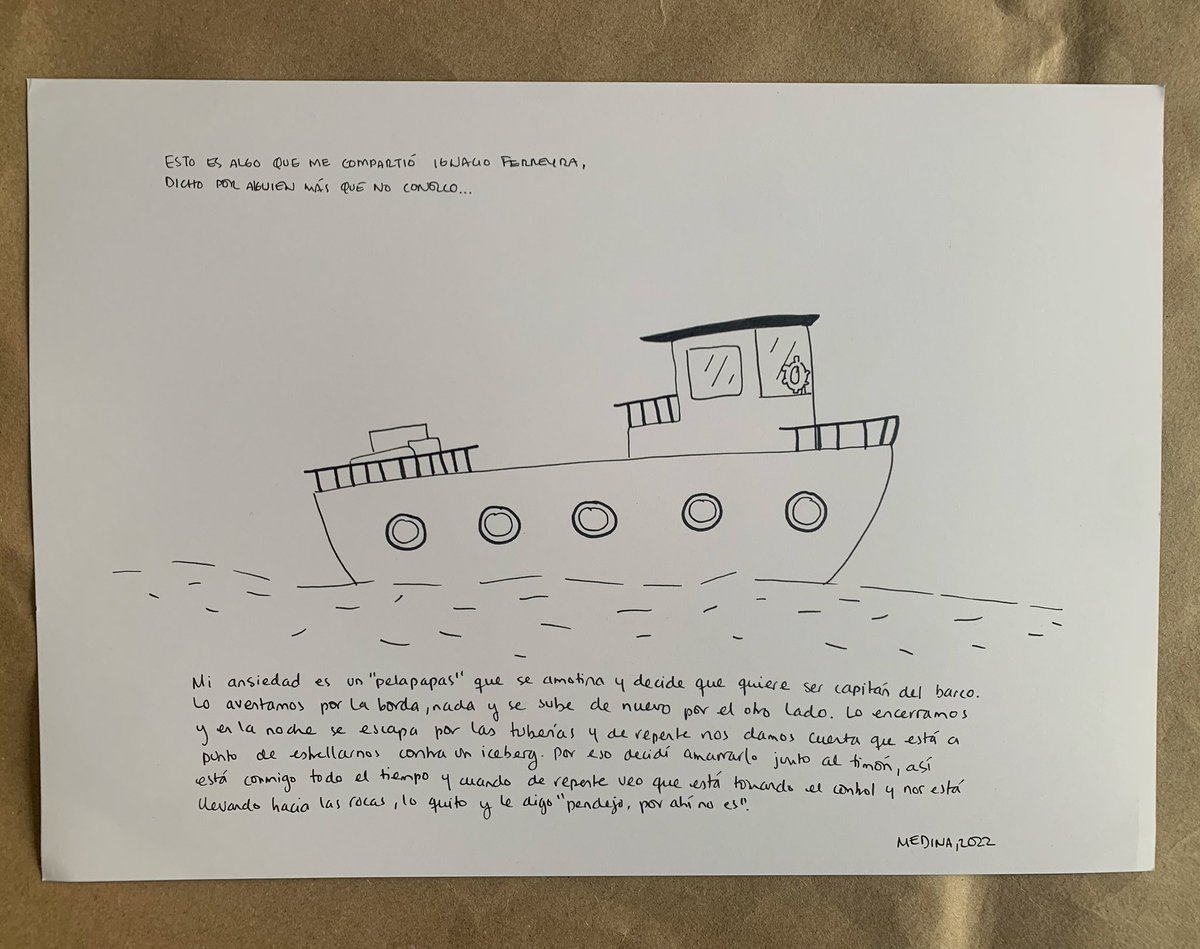 Hazle zoom para leerlo bien. Esta es una colaboración con alguien que no conozco pero su filosofía sobre la amsiedad fue de gran aiura. 🛥 #medinktober22 #inktober #inktober2022 ▪️03/10/22