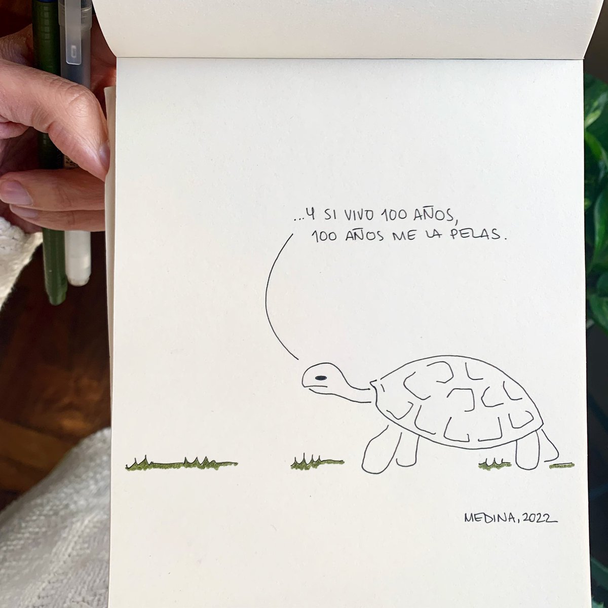 Un pensamiento sobre la longevidad. 🐢 4/10/22 #medinktober22 #inktober #inktober2022 (Visto en un meme).