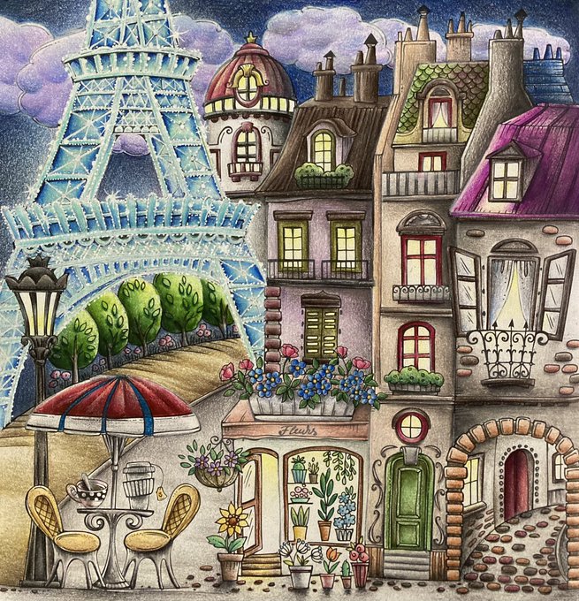 Twitterに載せるの忘れてた!やっぱリタさんは可愛い♡ #ritabermancoloringbooks #ritabermancoloringbook #ritaberman #meinereisedurcheuropa #大人の塗り絵 #色鉛筆 #prismacolor #polychromos