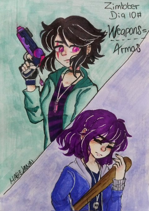 Zimtober Día 18 y 19# Curse/Maldición Spiky/puntiagudo #zimtober22 #inktober2022 #InvaderZim #Gaz #Mel
