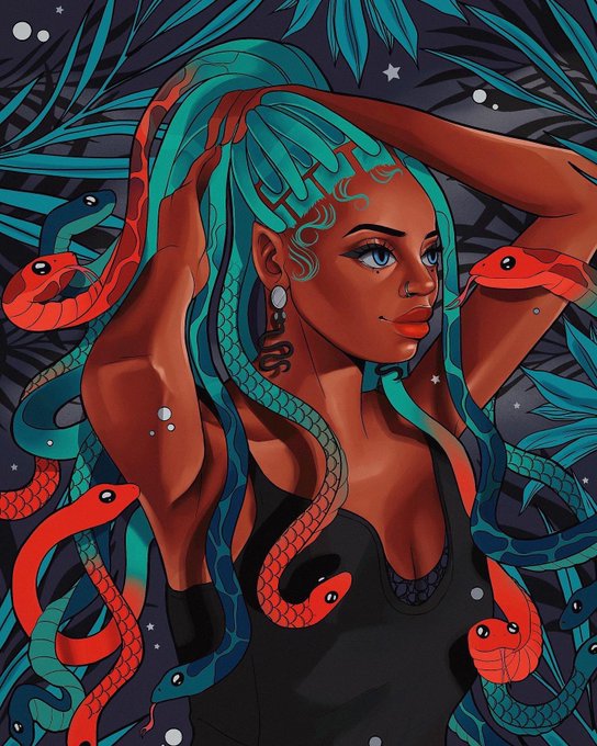 I participated in an amazing project with 13 other artists and I’m in love 💕 this is one of my pages and I’ll stream the digital coloring of another one of pages tonight on twitch if anyone wants to color with me 👩🏾🎨Link in bio for the book & my twitch #blacktober #melaninmagiccb