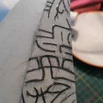 Nach einer weiteren Schicht UV Harz (über die ganze maserierte Seite) und ein leichtes abschleifen um es glatter zum Anfassen zu machen nun auch mit Gesso grundiert.... heute Seite 2 #cosplay #SevenDeadlySins #Meliodas #replika #sword #3ddruck #3Dprinted