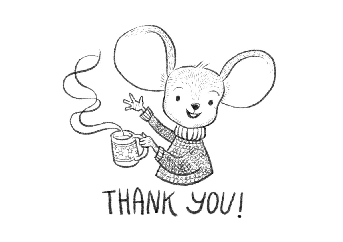 The 2022 October Art Challenge is over! Thanks for following along 😊 #Melotober #Melotober22 #Melotober2022 #ArtChallenge #Inktober2022 #Inktober #LineArt #KidLitArt #ChildrensBookArt #ChildrensBookIllustration #CozyIllustration #Coffee #ThankYou #ArtMouse #Mouse