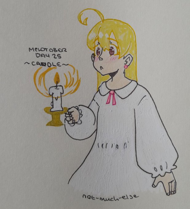 Days 25 and 26 of #melotober2022 eoth the prompts Candle and Kitty. This means I've finally caught up, whoo! #oc #inktober2022