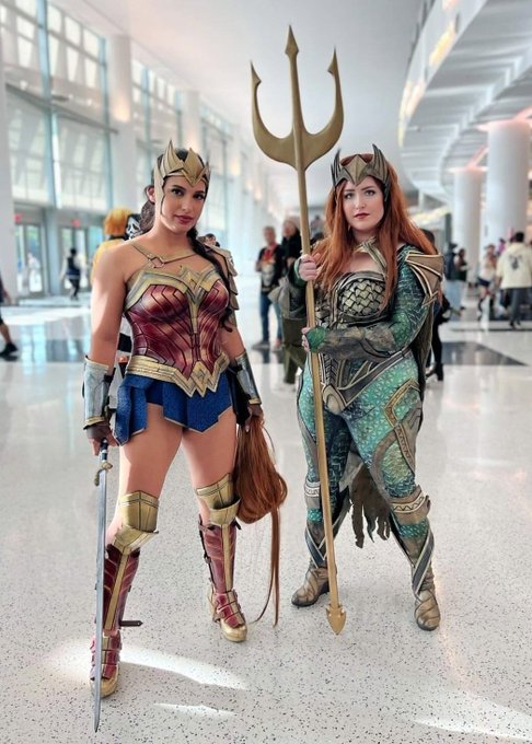 Throwback to this fun trip. Got to meet @LisWonder1 in person finally. We had too much fun with this wig 🤣🤣 #cosplay #wonderwoman #mera