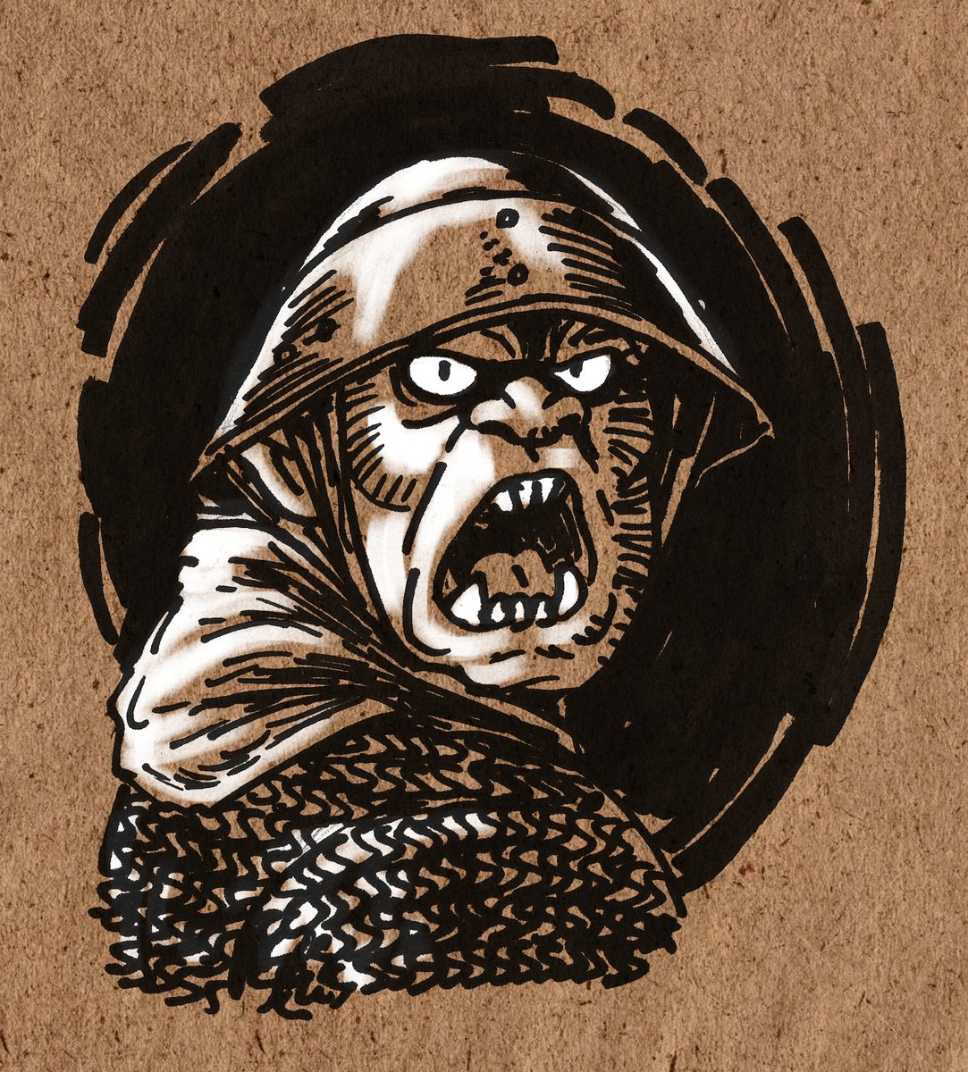 Nameless merc, ready for a scrape. #inktober #inktober2022 #inktober2022scrape #scrape #ink #jobus #joeolson #characterdesign #mercenary #assassin #warrior #processvideo #digitalart #procreate #drawing #art