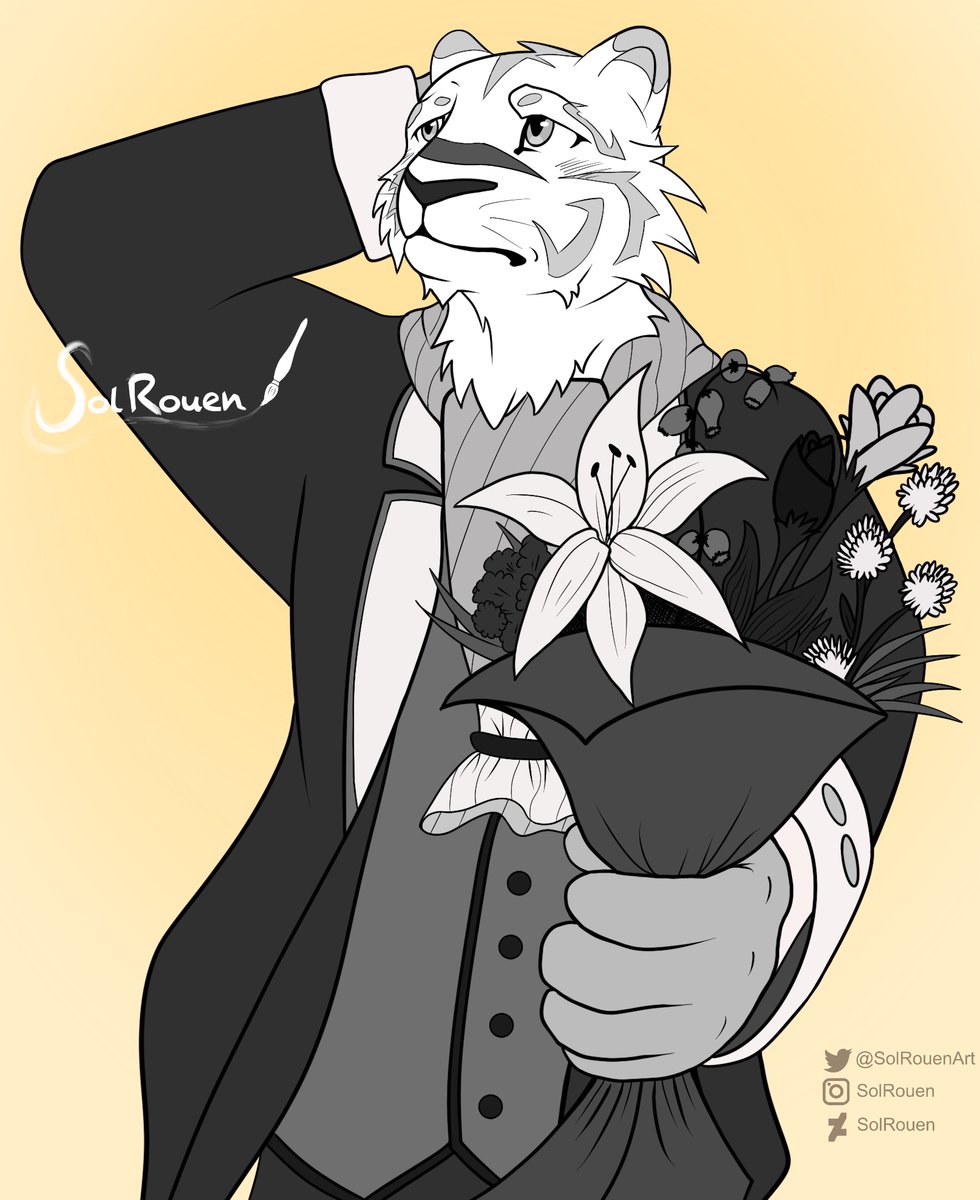 Inktober Day 6: Bouquet "Here...hurry take it...it's making my nose itchy..." That sounds like something dumb #Mercenary would say lol. #inktober2022 #Grimoireofzero