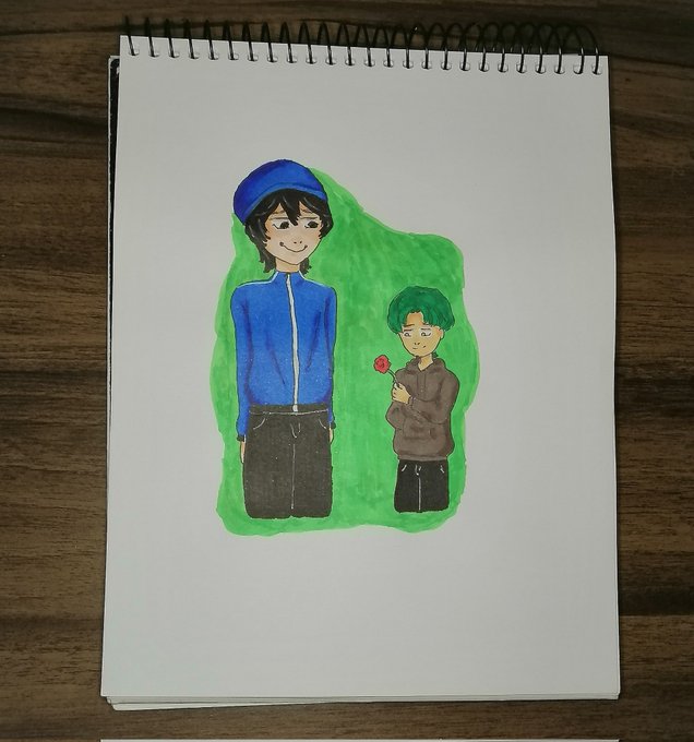 #KARMATOBER Día 4. Momento confort ~Cuando merlon le dio la florecita a quackity #quackityfanart #merlonvegetta #KarmalandFanart