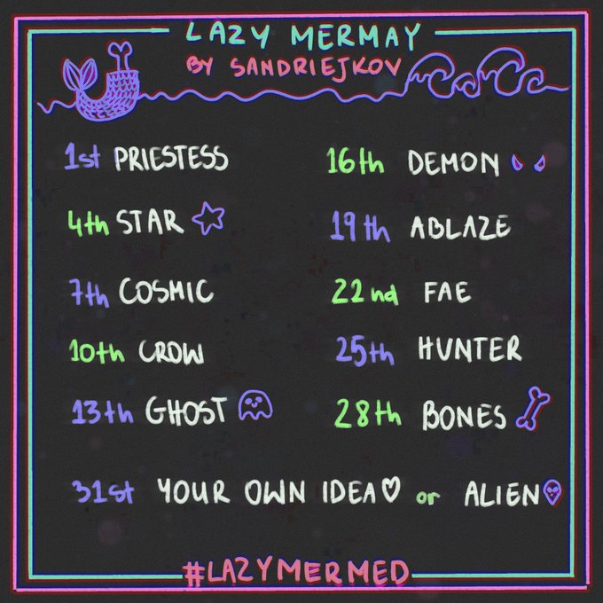 Join me on my #lazymermed UwU I'm too lazy to draw all 31 drawings, so here we are with 11 prompts. #mermay #mermay2022 #mermayprompts #DigitalArtist #artchallenge