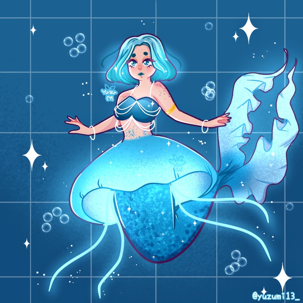 Third prompt ‘Jellyfish’, I loved doing this one 😍🧜♀️ onto the next one! . . #mermaywithelby2022 #mermaywithelby #mermay #mermay2022 #jellyfish #mermaid #mermaids #deepbluesea #glow #fantasy #fantasyart #procreateart #digitalpainting #digitalartist