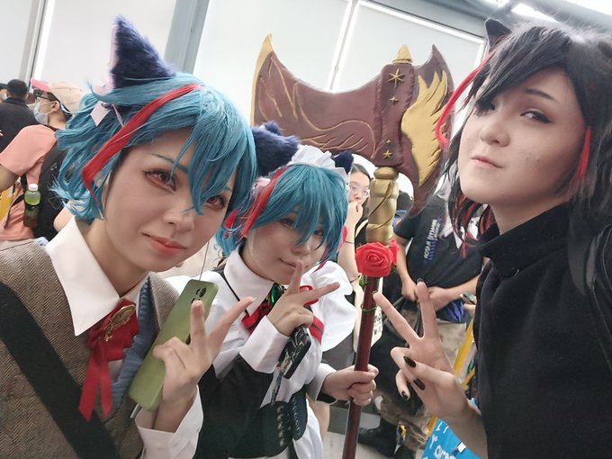 First day dokomi 💙 Cosplayed #KyoKaneko , got my fave comic & met #Merryweather ! Was a good one, onto day 2! #DrawKyo #Merryart @Merryweatherey