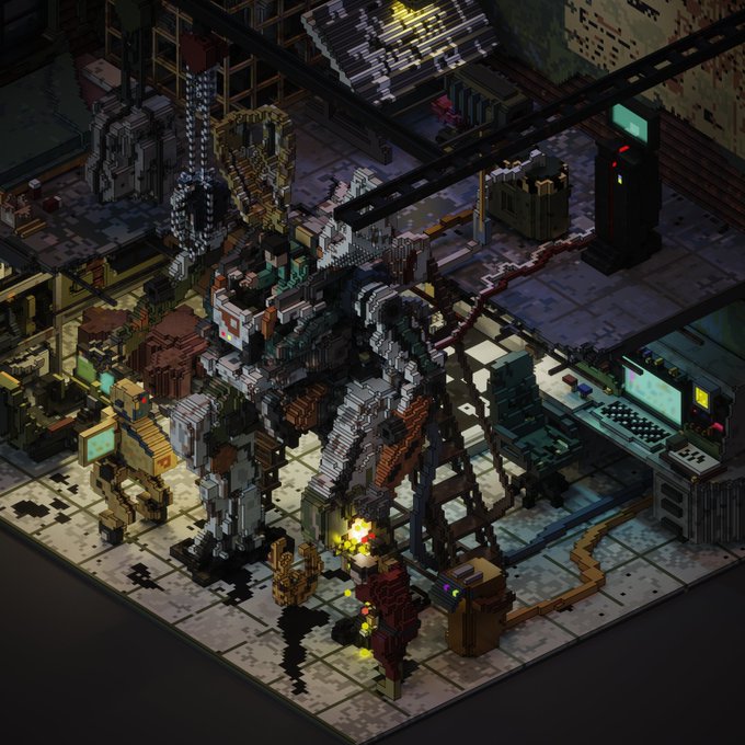 SUBURBS 🤖🙂 Coming soon… 2nd hand Mech robot workshop made of scrap parts 🤝@cryptocitiesnft🤝 #NFTCommunity #nftart #NFTs #NFTartists #voxel #voxelart #voxelworld #metaverse #metaversenft #metaverseart #metaverseartist #suburbs #cryptocities