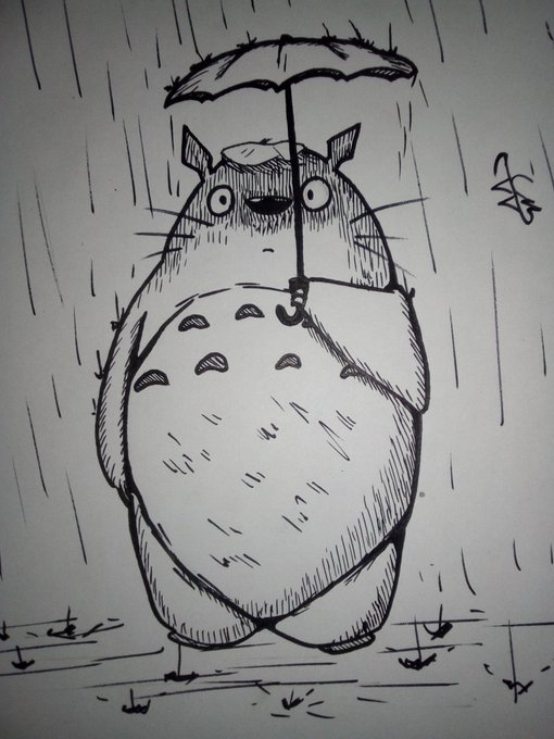 Nunca assisti "meu amigo totoro" mas parece ser legal #inktober2021 #inkdrawing #desenho #meuamigototoro #totoro