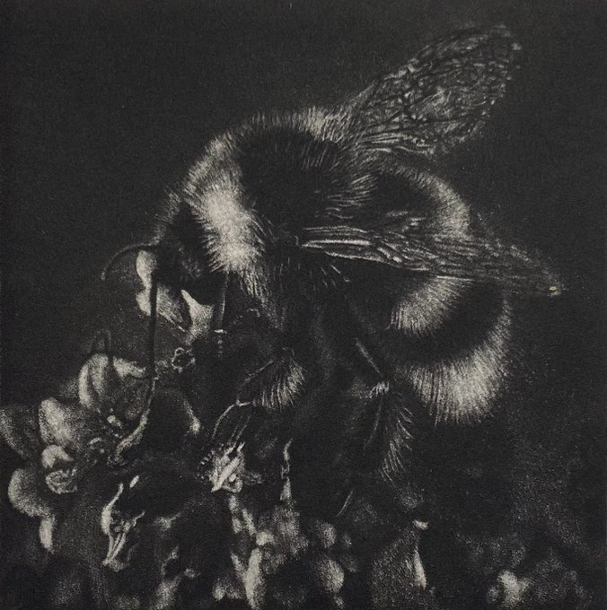 Can’t wait for the opening of @woolwichcontemporaryprintfair next week 03 – 06 November at @woolwichworks! 💥 and thrilled to have my prints selected! ‘Bumble’ #mezzotint #intaglioprint #WCPF22 #woolwichcontemporaryprintfair #FindArtThatFits #londonart #artfair #inktober #bee