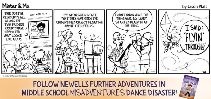Newell's making the local media in today's new Mister & Me comic. mister-and-me.com/comic/media-co… . #MisterAndMe #comic #webcomic #art #drawing #funny #KidLit #Kidlitart #MGlit #funny #illustration