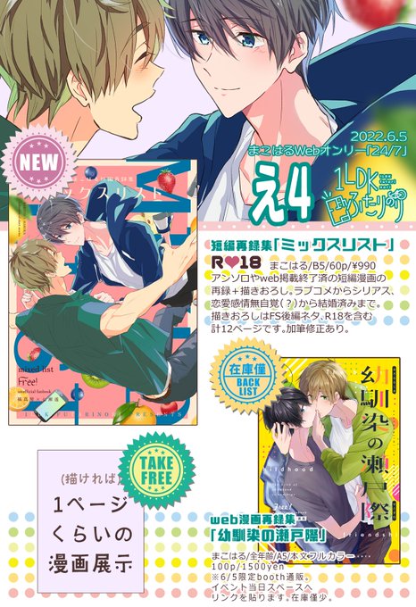 【お知らせ】 6/5 真遙Webオンリー、お品書きになります。エアスケブもお受けします。 会場⇒ pictsquare.net/oo70zctltf48nr… よろしくお願いします。 #mh24Seven_only
