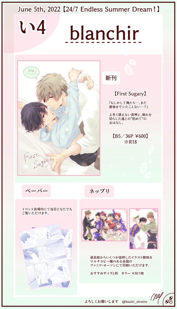 サークル参加させて頂きます。よろしくお願いします。 ・新刊、ペーパーなど予定 (主催様、作品発表の場を設けて頂き、誠にありがとうございます。) #mh24Seven_onlyサークル参加 #mh24Seven_only 【イベント】まこはるWebオンリー「24/7 Endless Summer Dream!」 pictsquare.net/oo70zctltf48nr…