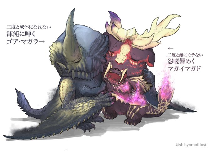 #今月描いた絵を晒そう #二次創作 #モンハンライズ #MHサンブレイク #MHRise #MHRisesunbreak 12月に描いたイラストをまとめました! 年末に今年のまとめイラストもアップ予定です! 1. ゴア・マガラくん、渾沌に呻いて♡ 2.zzz…ベア 3.イオリくん twitter.com/shisyamoillu…
