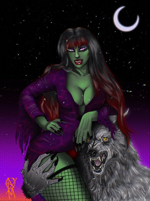my take on some classic horror😅 not much horror but a lot of titties 🥲 #illustration #art #mabsdrawlloweenclub #inktober2021 #elvira #werewolf #ArtistOnTwitter #miamiartist