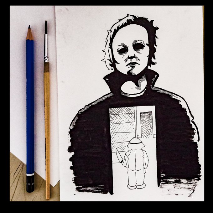 Seguimos con el reto #inktober2021 con #michaelmayers #ink #inkdrawing #inktober #Draw #terrormovies #Terror #classic #movies