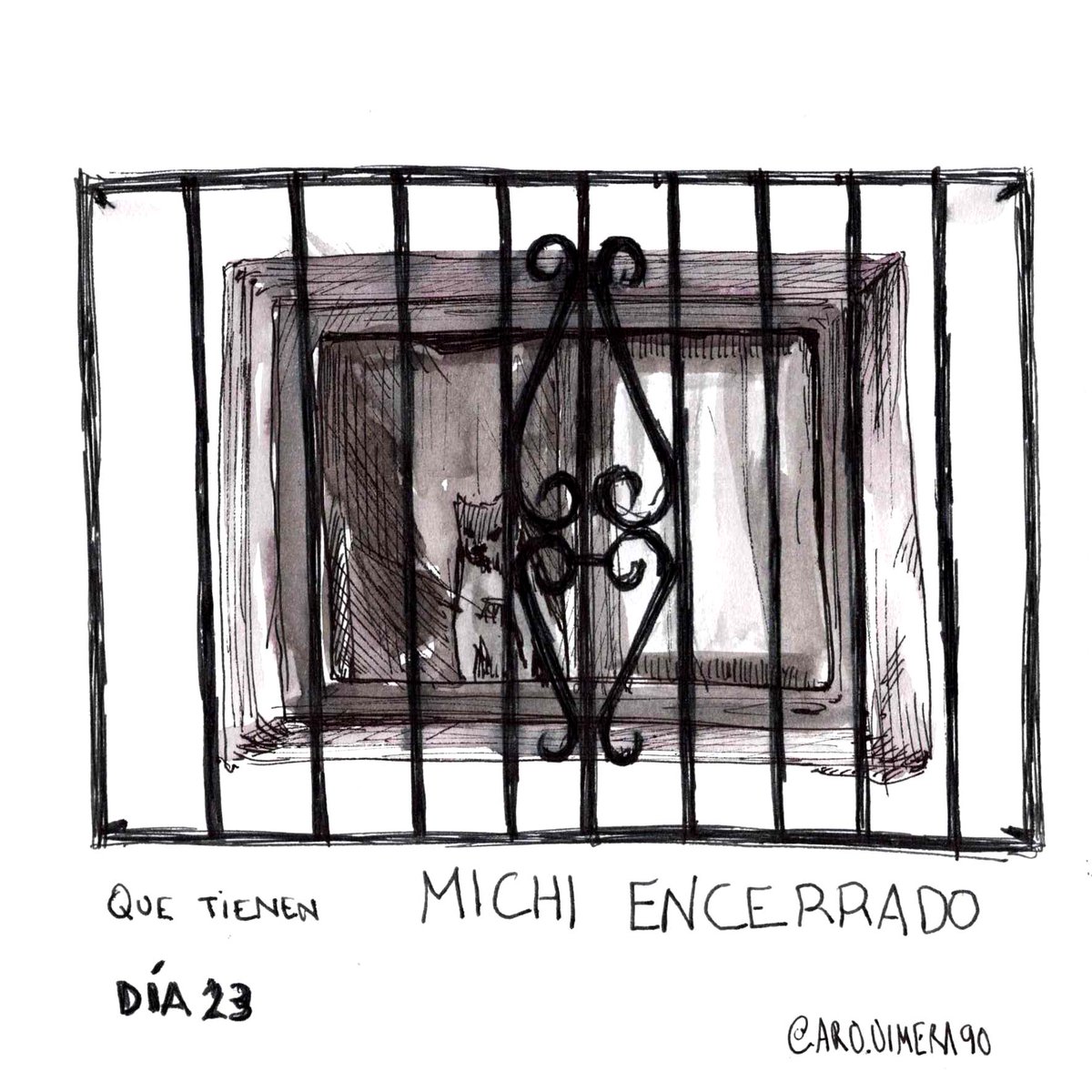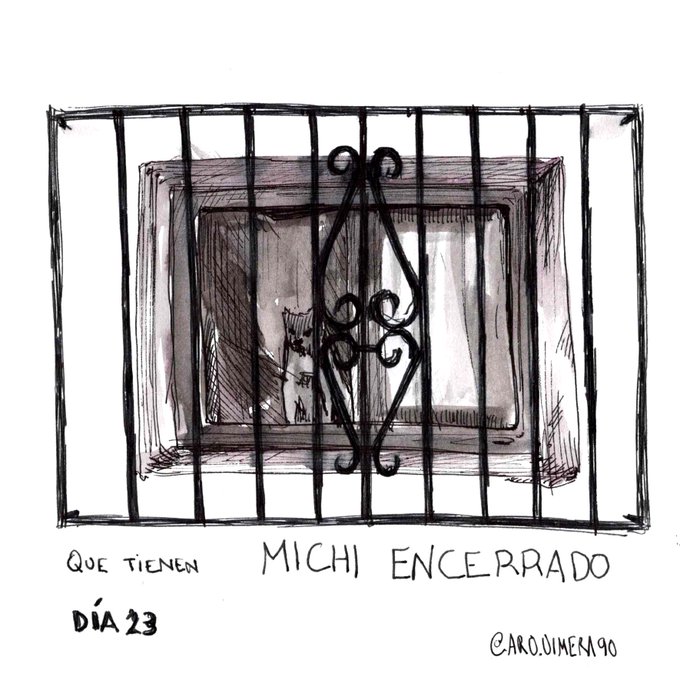 Día 23. En esta, había gato encerrado. Usaba mosquetera: el filtro a la vida... El michi no se escapa, los mosquitos no entran #perfecto #algúnlugardePortugal #michi #gatito #curioso #mosquitera #ventana #window #inktober #wINKdowtober #sketch #arquitectura #ink #architecture