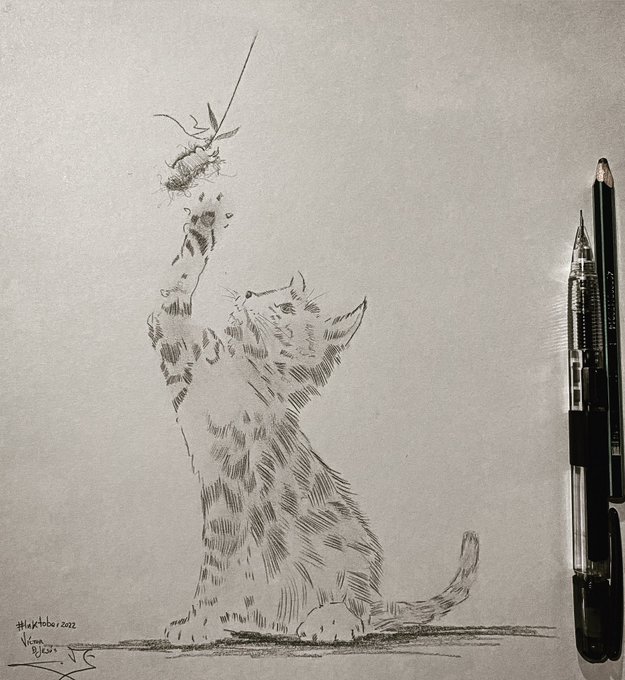 Me gustaría que mi escritura fuera tan misteriosa como un gato… pero soy analfabeta. #Inktober2022 #InktoberMexico #InktoberLibre #Inktober #Michi #Gato