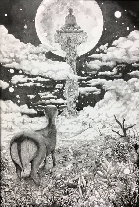 #9月になったのでフォロワーさんに自己紹介しようぜ フォロワーさんが少し増えたので改めまして、キャンバスに丸ペンとアクリルインクを使って線描で絵を描いてます🤗 #楠森道剛 #michitakakusumori #ペン画 #pendrawing #artwork #art #hatching