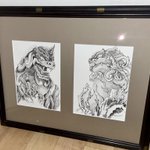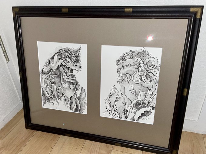 長らく放置してた「阿吽」を額装してもらった🤗 両方とも男前ですね🤣 #楠森道剛 #michitakakusumori #ペン画 #pendrawing #artwork #art #hatching