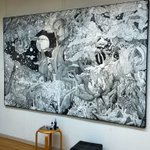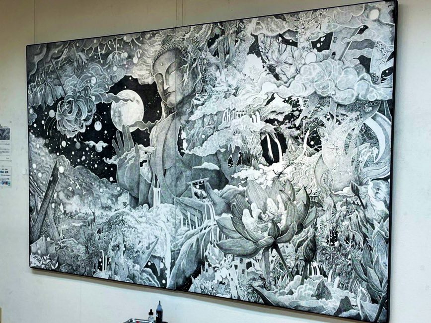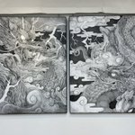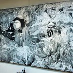 デッカいキャンバスに丸ペンとアクリルインクで線描を描いてます。 #年末年始はSNSなんでも展示会で繋がろう #楠森道剛 #michitakakusumori #ペン画 #pendrawing #artwork #art #hatching