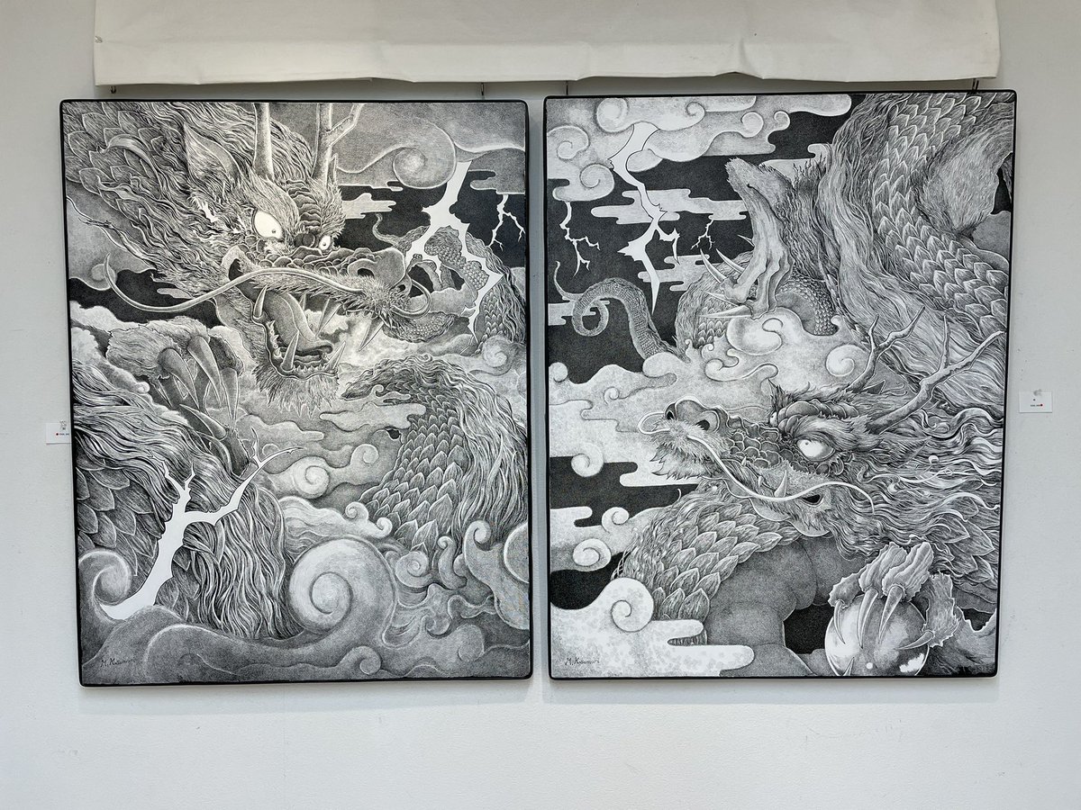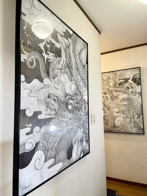 大変お待たせしましたが、無事に配達完了しました。 玄関入ってすぐのとても目立つ場所に、50号2点とも展示させて頂きました。 我ながら完璧な展示が出来たと思います笑🤗 #楠森道剛 #michitakakusumori #ペン画 #pendrawing #artwork #art #hatching