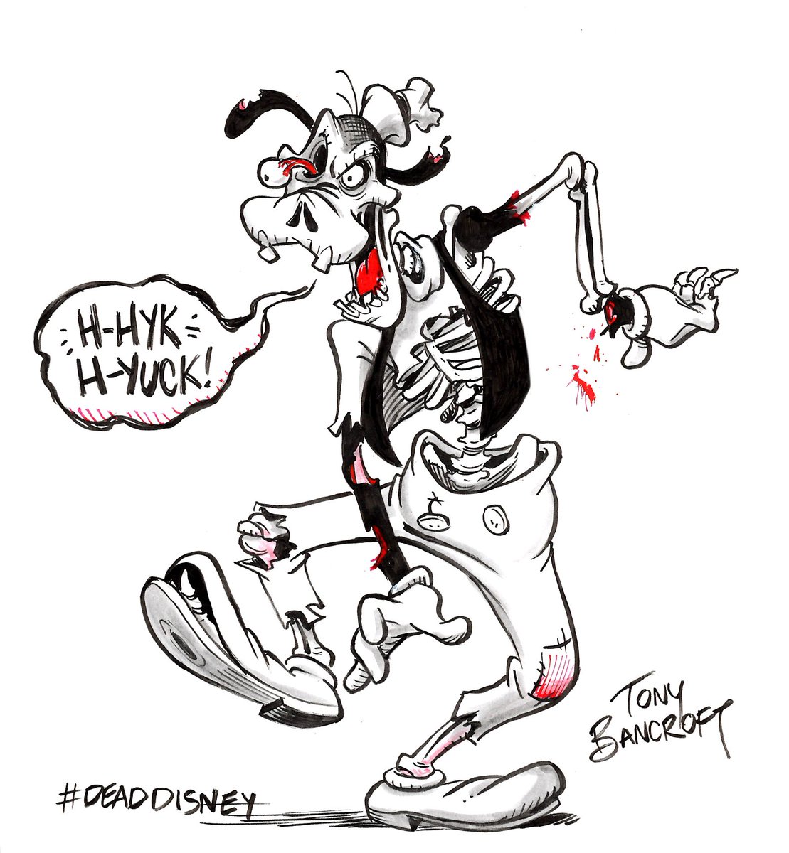 #Intober2022- Day 2 #DeadDisney -#Mickey caught up with #Goofy as he took a twirl in the teacup ride. Goofy was infected before the ride stopped. He can be seen walking in circles at #Disneyland ever since. #Inktober #kuretake #ink #drawing #disney #zombie