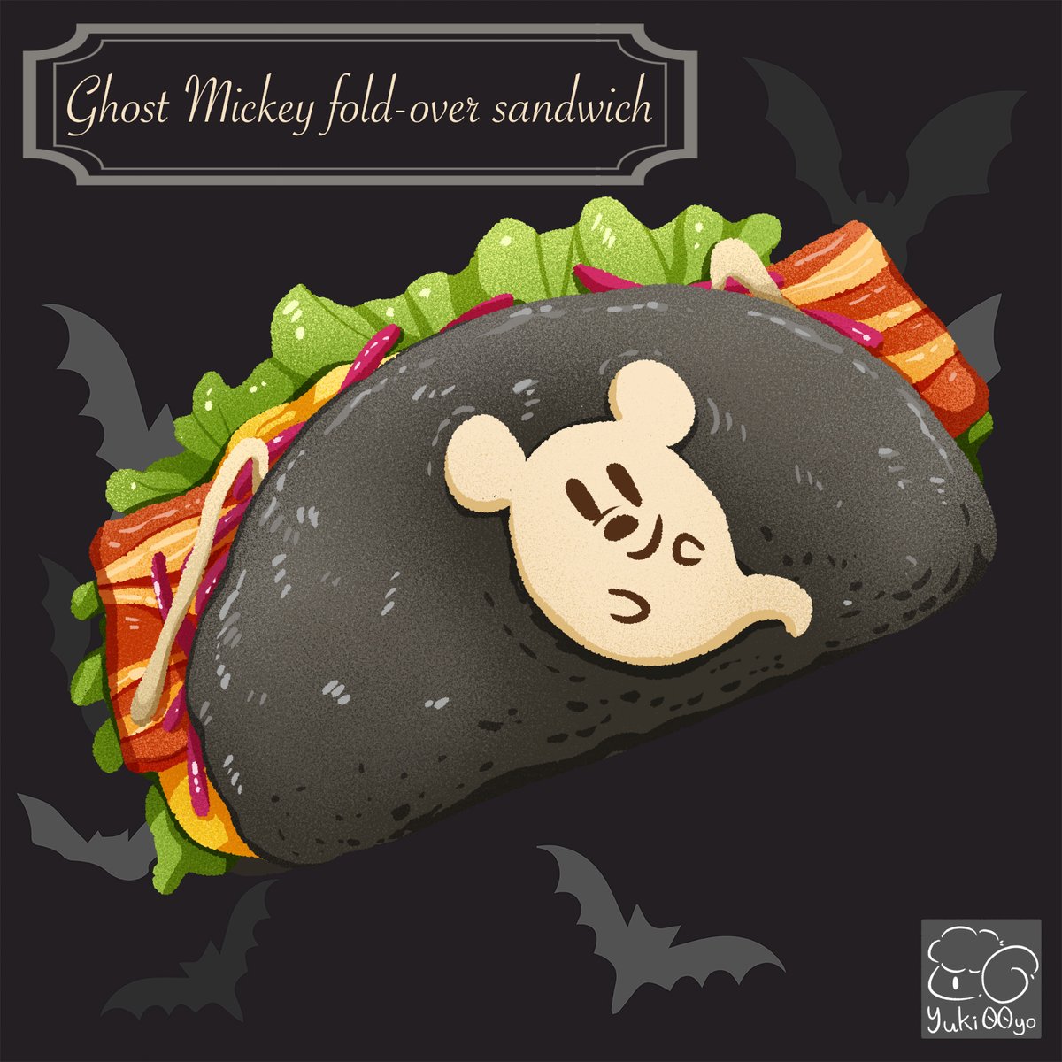 10.05 Countdown to Halloween Day 05 Ghost Mickey sandwich ================= #drawing #drawingfood #illustration #fooddrawing #foodieart #絵 #イラスト #食べ物イラスト #イラスト好きな人と繋がりたい #香港插畫 #美食插畫 #食物繪畫 #halloween #萬聖節 #halloweendessert #mickey