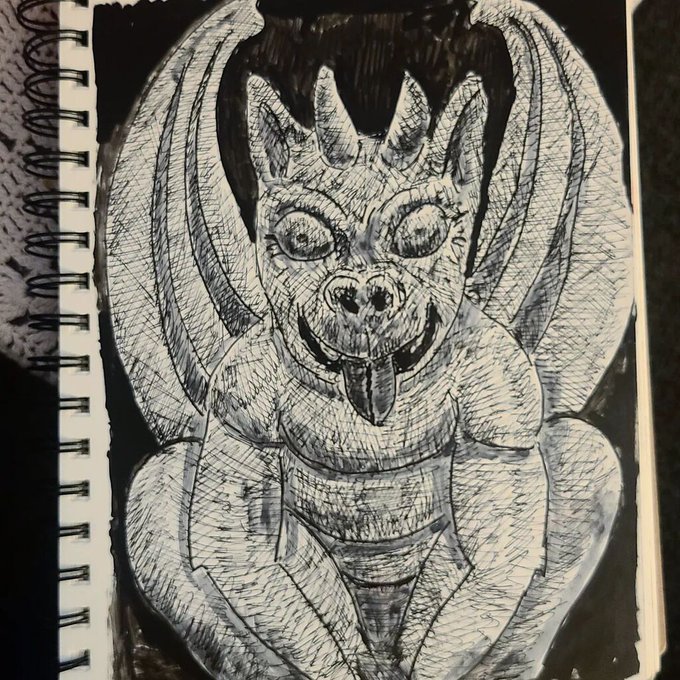 Gargoyle Inktober day 1 2022 #sketchbook #inkeddrawing #inktober #inktober2022 #gargoyle #brushpen #pittpens #micronpens instagr.am/p/CjMb1iJuR8P/