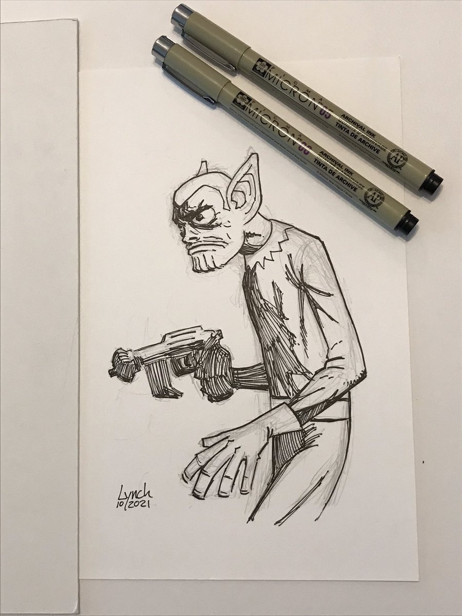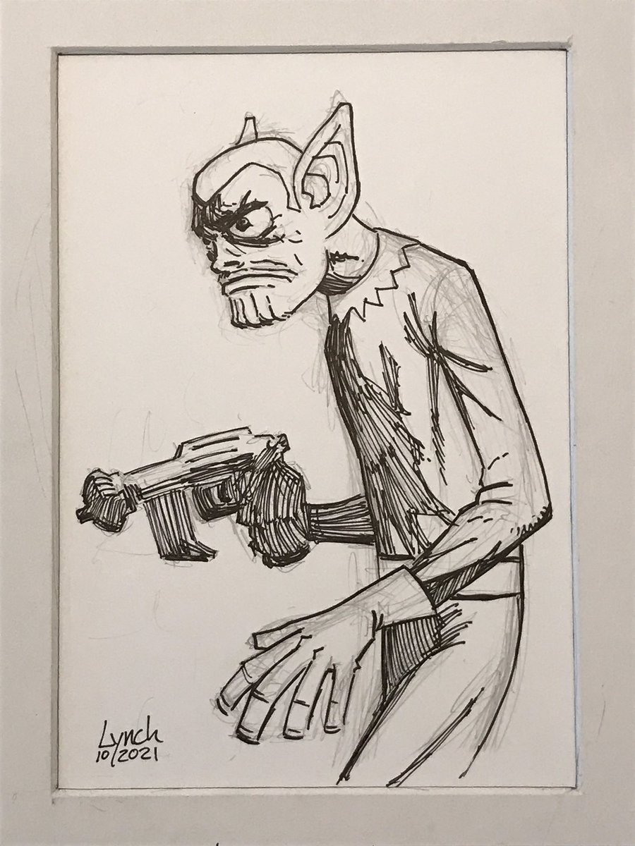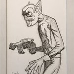 #Jacktober: Skrull. Ink on 80lb Hammermill Color Copy Digital Color paper, 5.5 x 8.5 overall. Image fits 5x7 mat. $10 plus shipping. #JackKirby #Inktober #KirbyCharacters #fanart #inksketch #microns