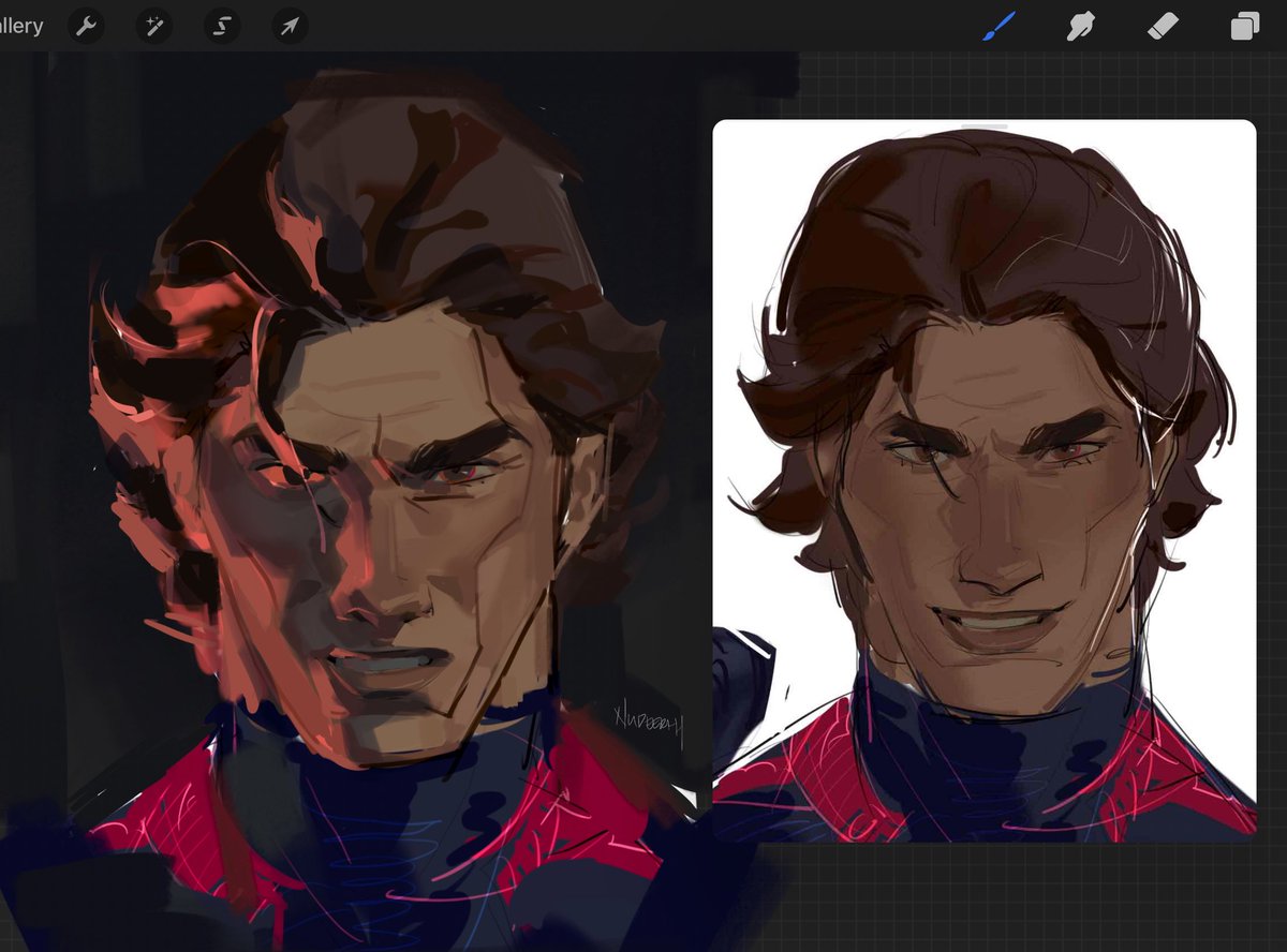 -Lo había dejado re plantado al pobre Miguel. -I had left poor Miguel aside. #SpiderManAcrossTheSpiderVerse #MiguelOHara #fanart #ilustracion #processart