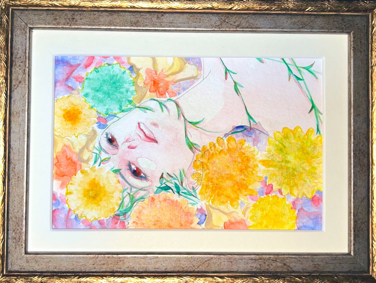 お昼ですね🍚✨ 二人展用作品出来ました🍾 見に来てね〜😊🙏💕💕 【零す〜Kobosu】 これからアナログシャンパンマンにかかります🥂⭐️ #mijello #danielsmith #arches #透明水彩 #絵描きさんと繫がりたい #世界絵師 #アトリエの系譜