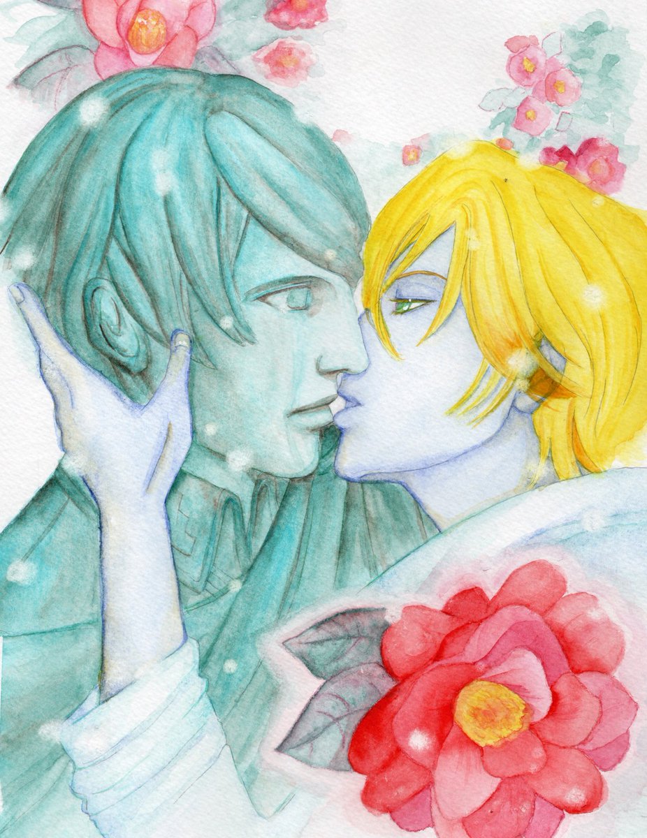 おはようございます♥️ 再掲【再会❄️】 何処かの次元の雪降る庭で 巡り合った二人‥ ガーレ・デスラー #クラウス・キーマン #アベルト・デスラー #透明水彩 #mijello #アナログ画 #絵描きさんと繋がりたい #世界絵師 #yamatofanart