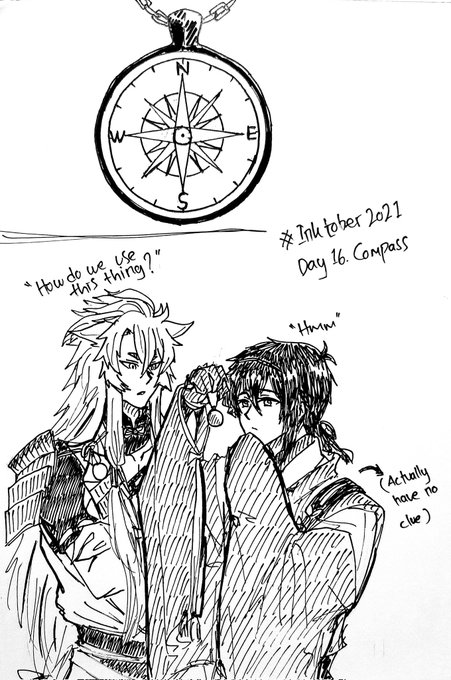 Inktober2021 Day 16 "Compass" Kogitsunemaru and Mikazuki from Touken Ranbu . #inktober #inktober2021 #kogimika #kogitsunemaru #mikazukimunechika #toukenranbu #Fanart