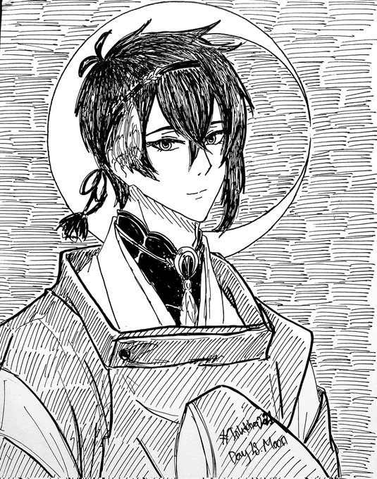Inktober2021 Day 18 "Moon" Mikazuki Munechika from Touken Ranbu . #inktober #inktober2021 #MikazukiMunechika #touran #toukenranbu #FANART