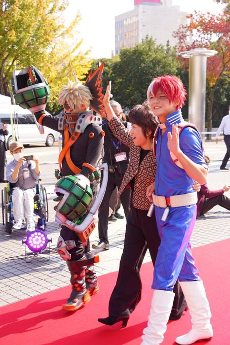 高知アニメクリエイター祭2日間お疲れ様でした☺ 初日のセレモニーではヒロアカコンビで実行委員長の山﨑久留美理事長のエスコートをさせて頂きました🙌 #高知アニクリ #アニクリ #高知信用金庫 #mikenecos #高知アニメクリエイター祭