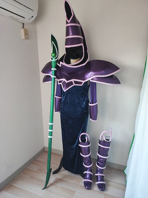 【完成報告】遊戯王からブラック・マジシャンの初期イラスト衣装制作してみました! 今回は特に色や生地にも拘ったよ✨ 繊維部分のローブは晃さんにお願いし 杖の塗装をものづくりラボ様に協力頂きました!ありがとうございました! #遊戯王OCG #atelierWD #mikenecos