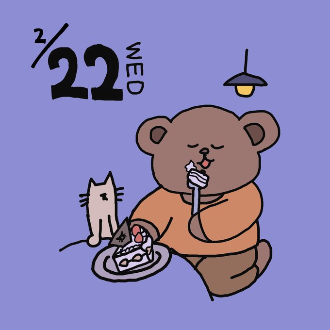 今日は2月22日(水)。 #にゃんにゃんにゃんの日 #猫の日 だけど、甘ーいケーキも食べたいよね。 猫にはケーキはあげません。 #mikitoart #今日は何の日 #今日はねこの日にゃんにゃんにゃん #猫 #イラスト #ショートケーキの日 #ケーキ #甘党 #日付シート