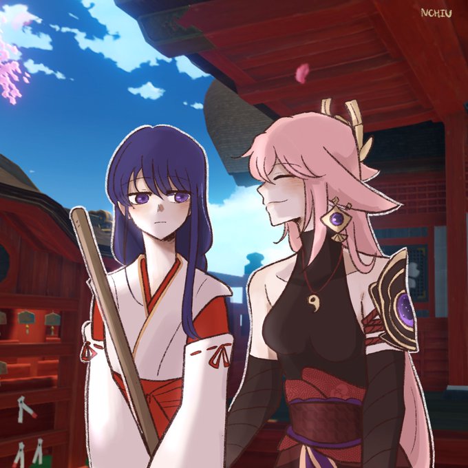 Beautiful commission from my Dear Friend @AqquaaT My own Eimiko being totally in love 😭❤ #eimiko #mikoei #RaidenShogun #RaidenEi #yaemiko #GenshinImapct #genshinimpactfanart #Genshin #yaebaal
