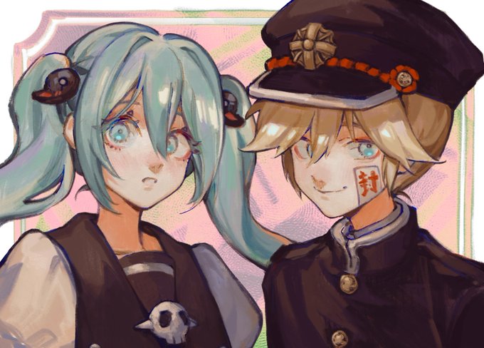 Hi, I painted over an old sketch. #Miku #Len #mikuhatsune #lenkagamine #hatsunemiku #kagaminelen #enmiku #art #drawing #fanart #鏡音レン #初音ミク #レンミク #ボカロイド #ミクレン #地縛少年花子くん #ibakushounenhanakokun #toiletboundhanakokun #crossover #イラスト