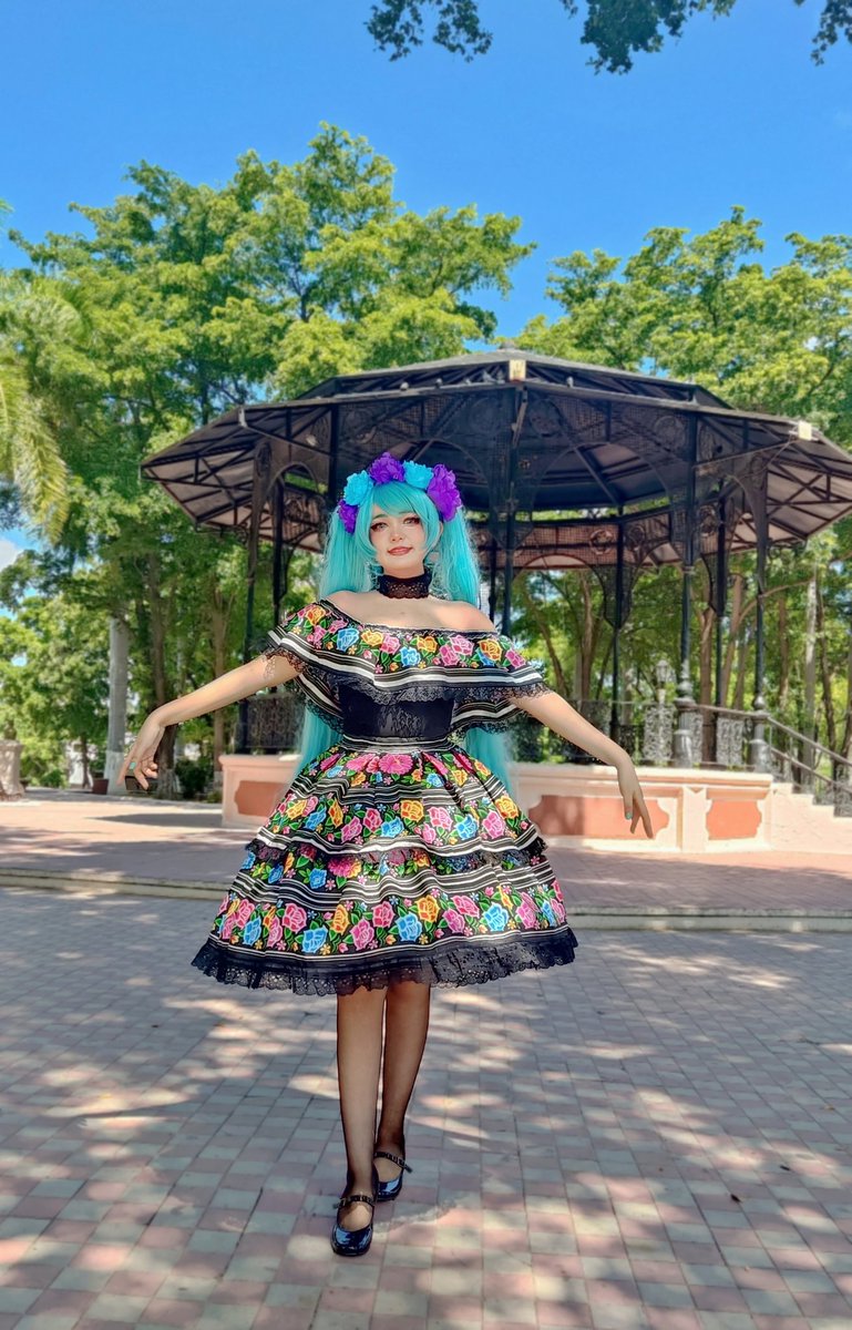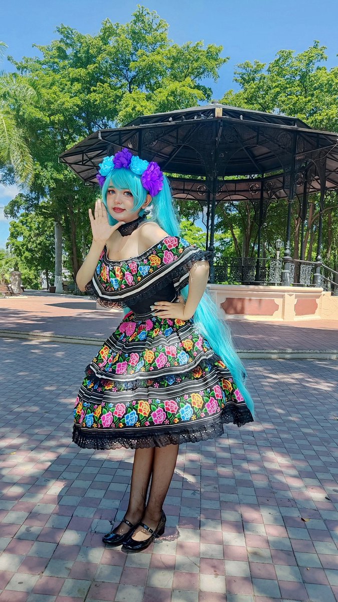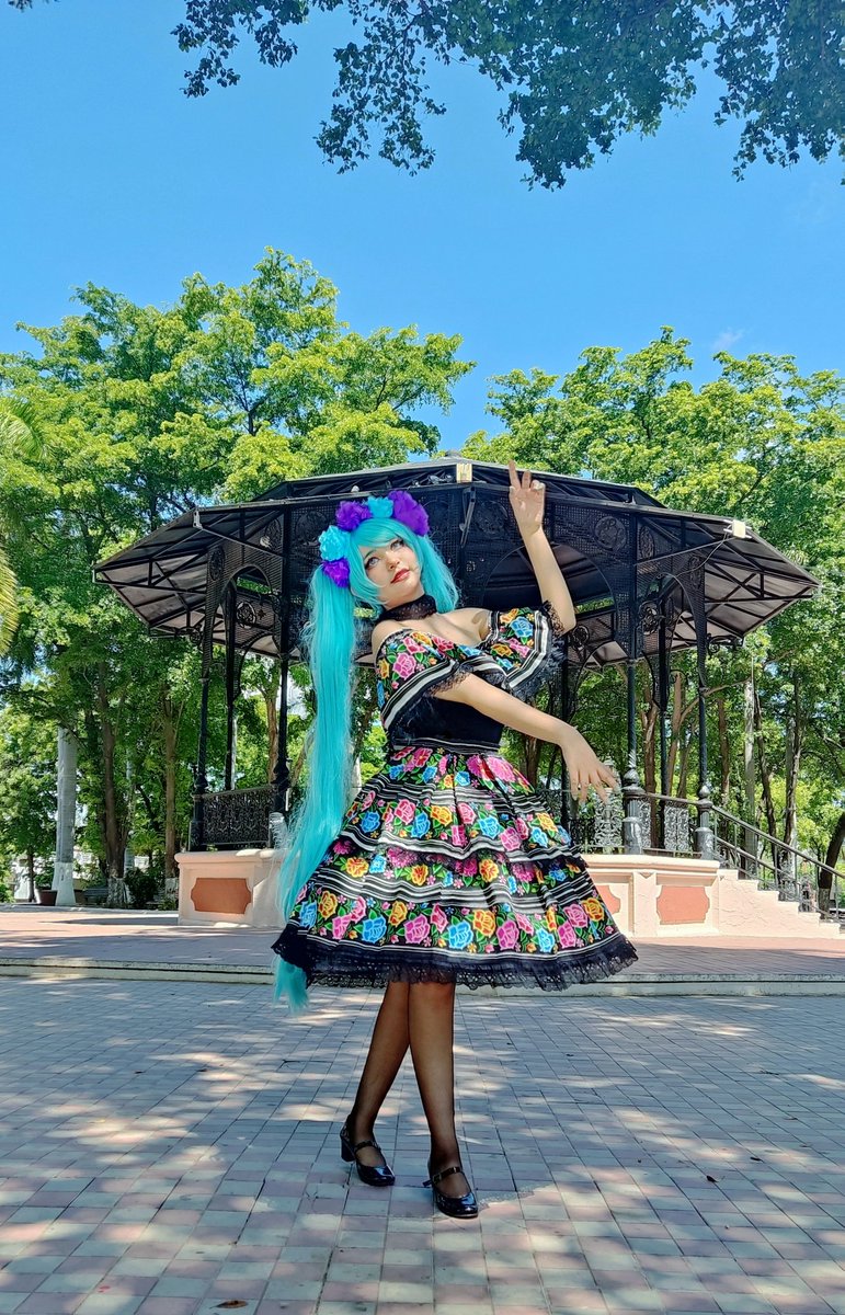 Hoy es un día en que recordamos a nuestro seres queridos que han abandonado este mundo para descansar✨ #mikucatrina #mikumexicana #mikucosplay #cosplay #catrinamakeup #catrina #vocaloid #hatsunemiku #mikugerms #vocaloidcosplay #sempasuchil #diademuertos #llorona #catrina