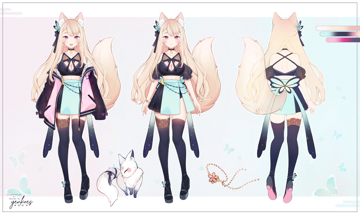 こんこん ~ I'm Mila, a fox who loves playing in flower fields under the moonlit sky with my companion Seina (*´꒳`*)✨ I look forward to cozy and comfy times with you all! Design and illustration: @yenkoes Rigging: @cillia Debut: Late Apr 2022 #ENVtuber #Vtuber #milaillust