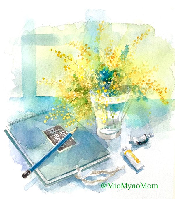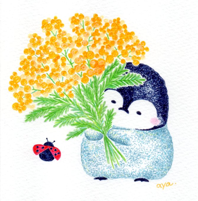 花が開くみたいに、心が開く瞬間。 #ボールペンイラスト #ミモザ #春 #イラスト #イラストレーション #ペンギン #詩 #ASD #illustration #mimosa #spring