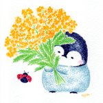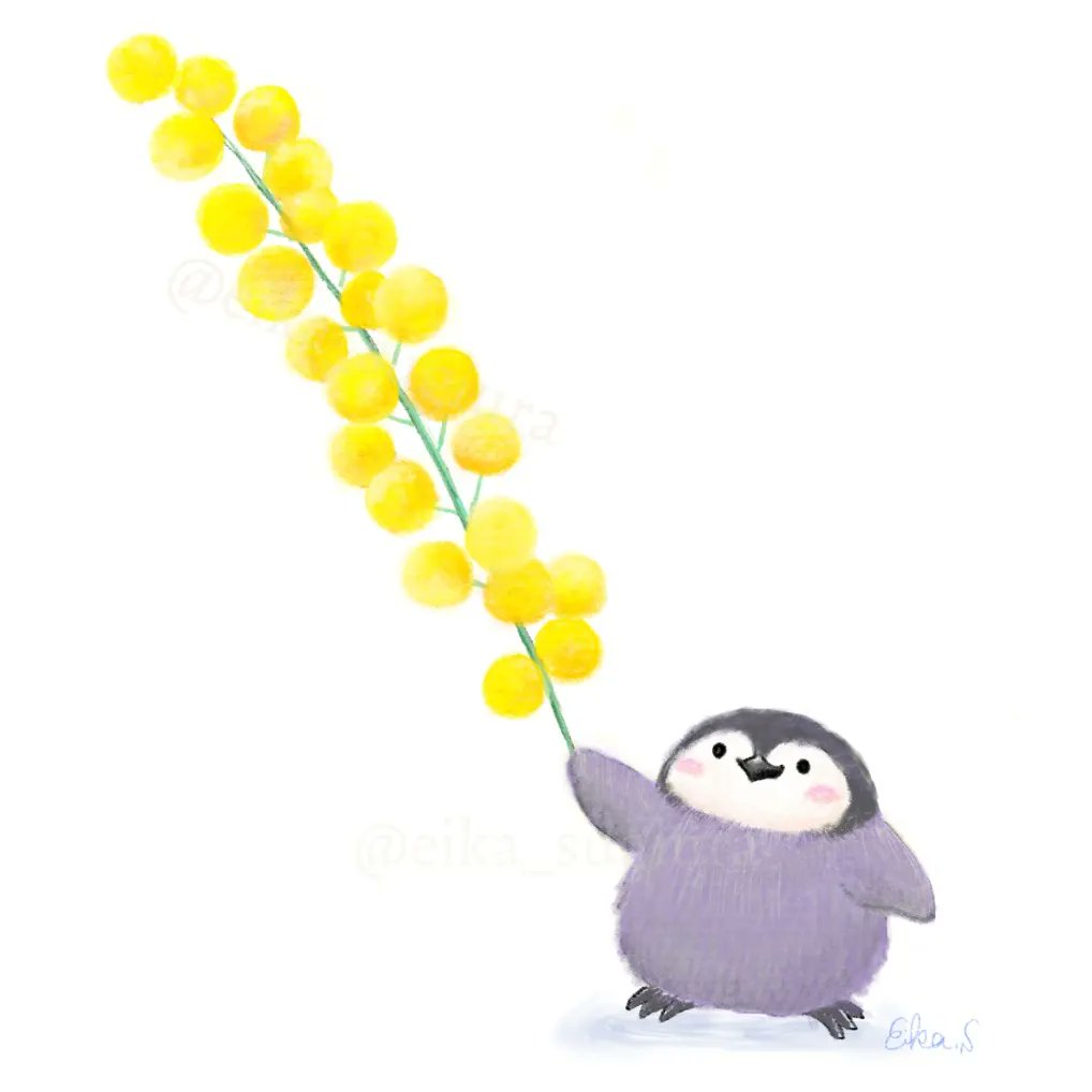#ミモザ と ミニミニ赤ちゃん #ペンギン 🐧💛 初めて #デジタル絵 に挑戦しました✨ #giftforonetimeuse #ChildrensBooks #penguin #mimosa #Digital #illustraion #IllustratoroniPad