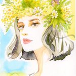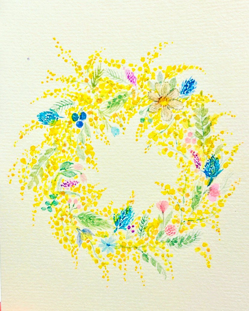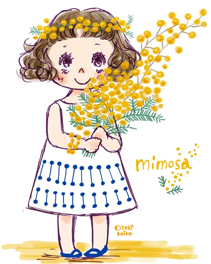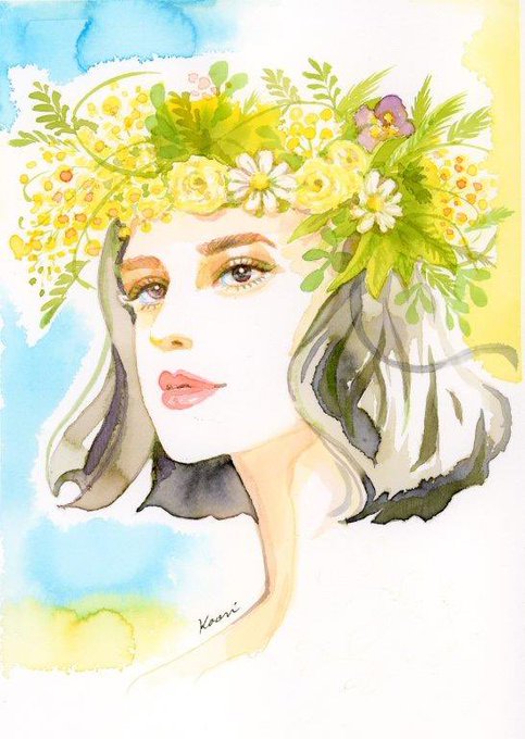 3月8日は #ミモザの日 。厳しかった冬に別れを告げて、春の訪れを愛でる花です。女性に感謝を伝えるイタリアの記念日 Festa della Donna(女性の日)がミモザの日として広まったそう。華やかなイエローは元気をもらえますね。 #art #mimosa #girl #woman #illustration #kaorinakazato #flowercrown