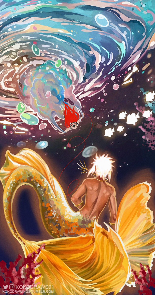 “How did you find me? I’m usually the one who looks for you.” “Gut instinct.” #Mermay: Minakushi edition #mermay2023 #minatonamikaze #kushinauzumaki #minakushi #naruto